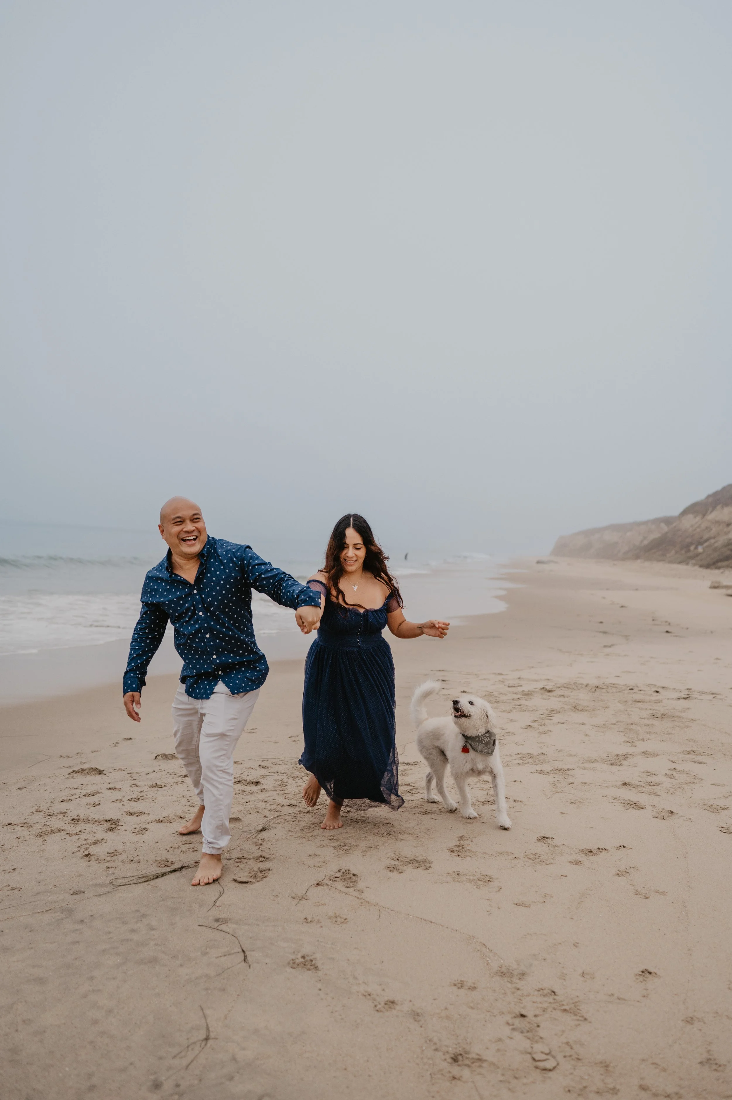 As a photographer based in Corona, CA, I’m always thrilled when couples want to make their sessions personal and adventurous. This couple truly embodied that spirit, bringing not only their playful pup but also their laid-back cat for a unique and heartwarming photoshoot by the ocean. Capturing the interaction between pets and their people makes every session unpredictable, authentic, and fun—and that's exactly what this one was.